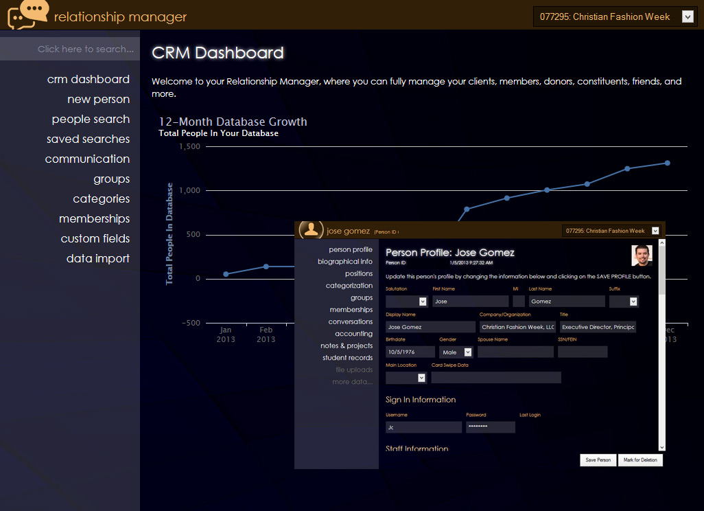 Person Profiles: We gather dozens of information fields per relationship including contact, access, and personal information.